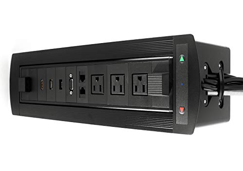 Flash Deals - 80% OFF Yolkvisual Motorized Connectivity Box for Conference Room Tables 3 AC + 1 HDMI + 1 USB Type C + 1 VGA + 2 RJ45 + 1 USB, Black Color